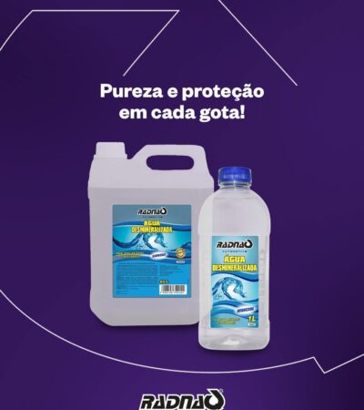 A Água Desmineralizada Radnaq é a escolha perfeita para garantir o cuidado ideal dos seus sistemas. Com um processo avançado de purificação, ela remove todas as impurezas, oferecendo máxima eficiência para baterias, radiadores, motores e muito mais! P...