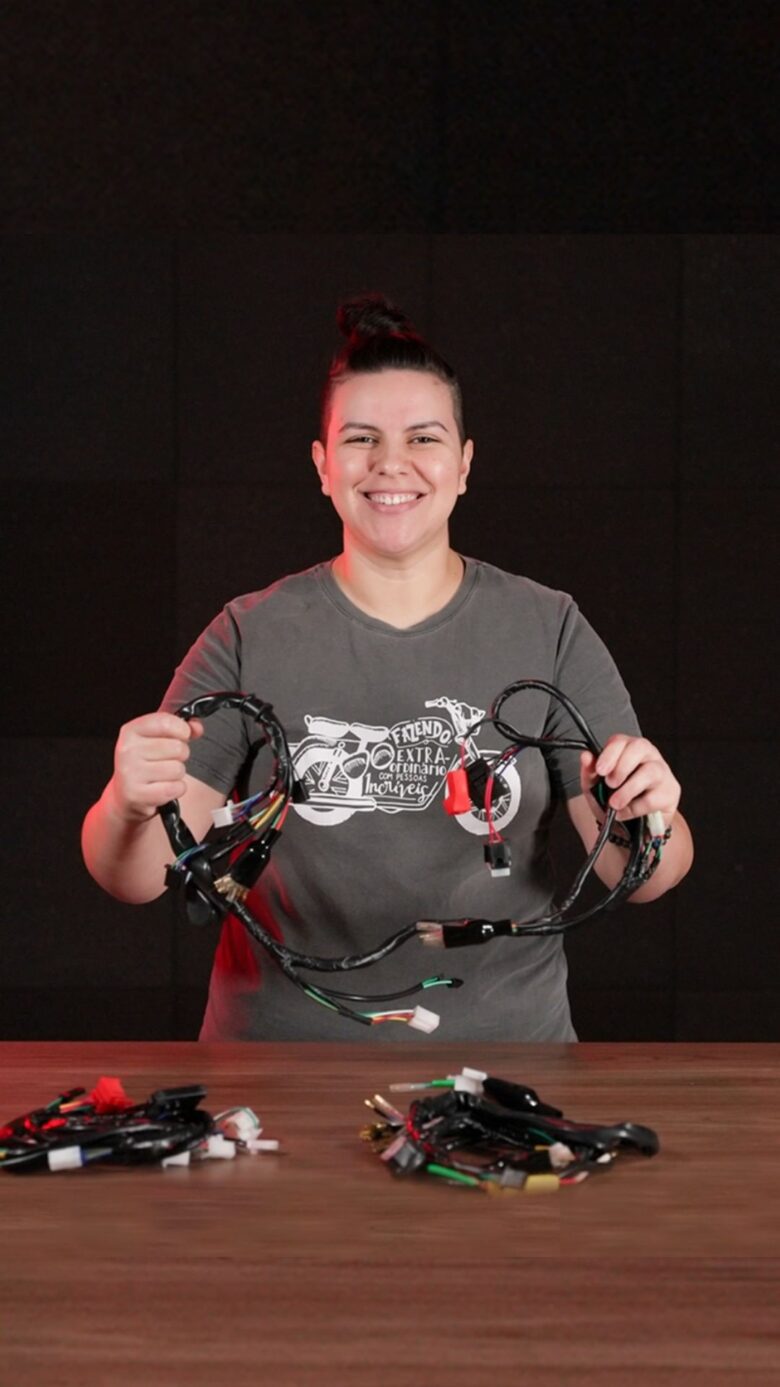 A fiação principal conecta os componentes da moto para garantir que a energia elétrica seja distribuída e tudo funcione corretamente. Também organiza e protege os fios contra umidade, calor e atritos para evitar falhas e curtos. ? Mais detalhes no vídeo com a Dani, do nosso time de engenharia. ?