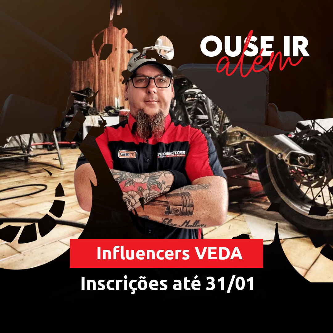 Alô, influenciador do segmento duas rodas! Você se conecta com o propósito da marca Vedamotors? Gosta dos nossos produtos? ❤