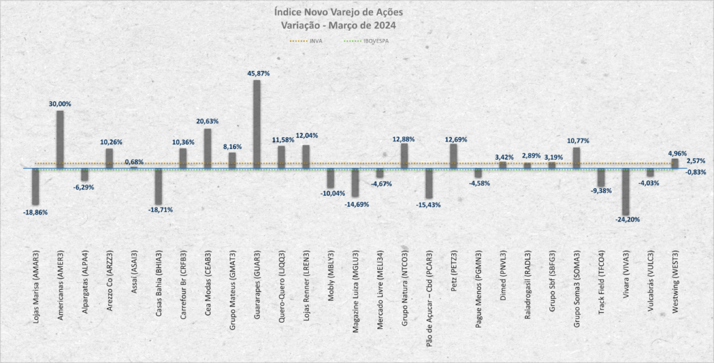 Descoladas do Ibovespa, ações do varejo recompensam investidores em março