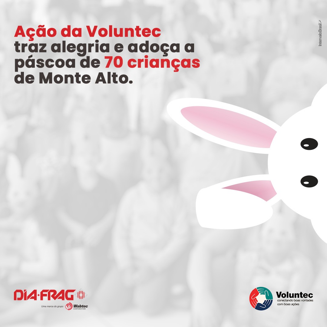 O Voluntec se movimentou para adoçar a Páscoa de algumas crianças. Em Monte Alto, foram 70 crianças agraciadas, sendo 50 crianças do Projeto Osmar Luz e outras 20 crianças da Pastoral São Benedito.