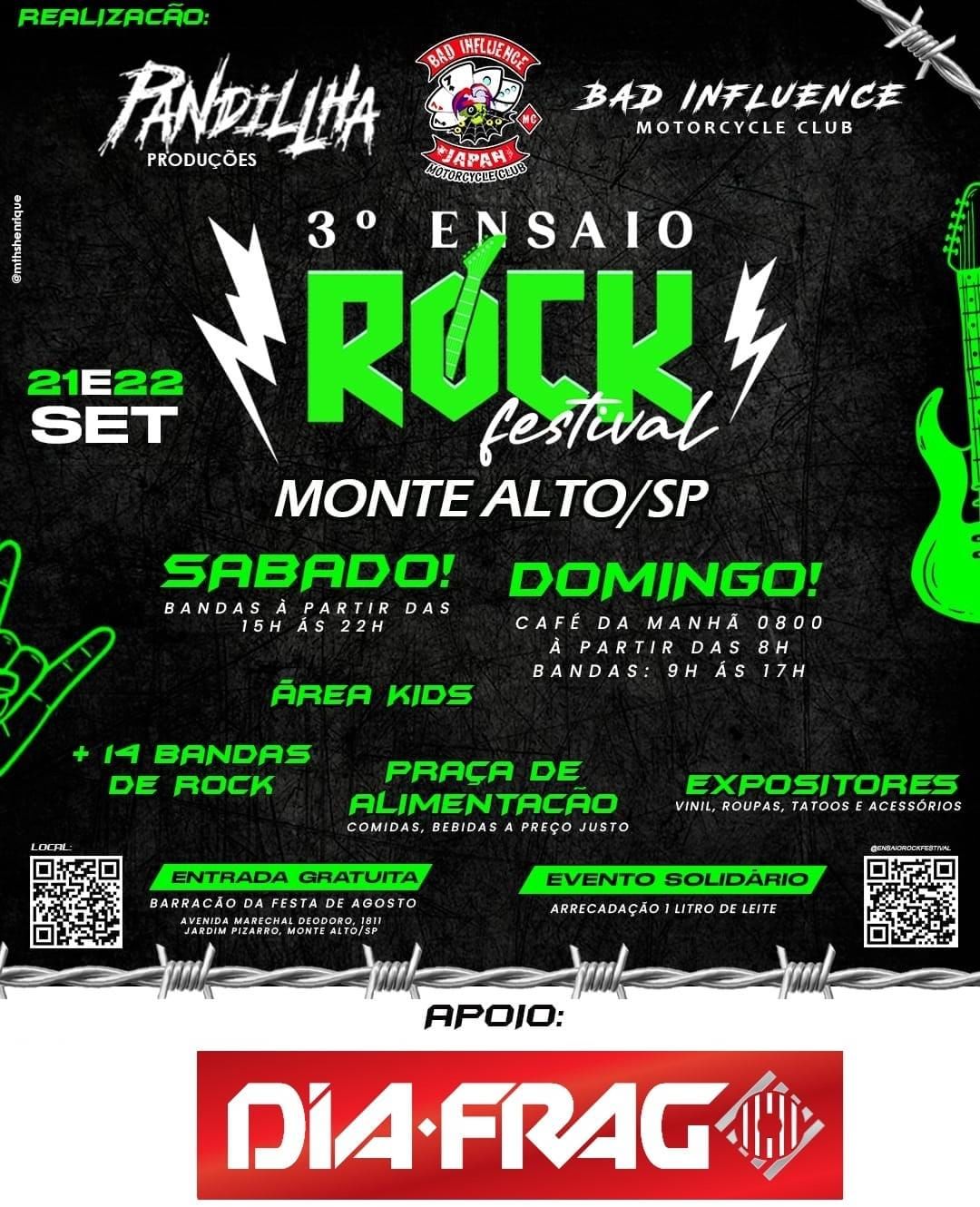 Dois dias de muito Rock! Vem aí o 3º Ensaio Rock Festival.