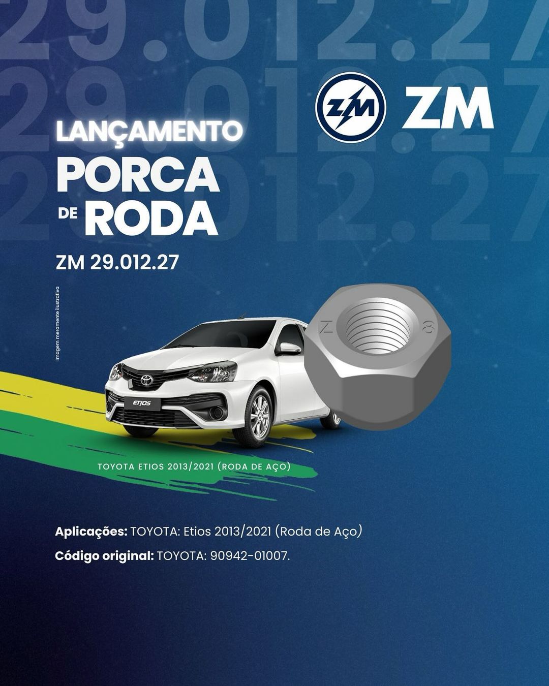 Estamos lançando a Porca de Roda ZM 29.012.27 com aplicação Toyota Etios 2013/2021 para roda de aço.