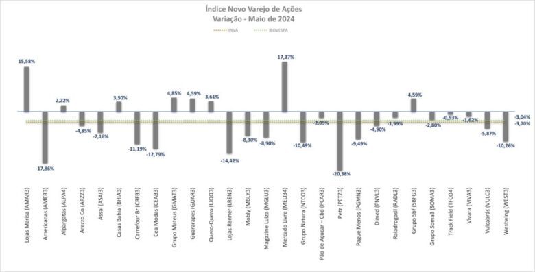Em um mês de maio atribulado para a economia nacional, as empresas do varejo andaram de mãos dadas com o Ibovespa – principal índice da Bolsa brasileira.